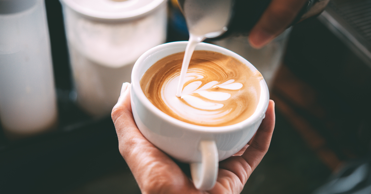 Barista made coffee latte in a coffee shop.