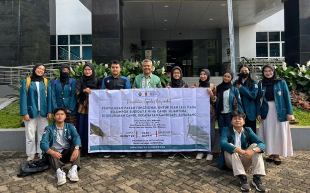 KANALBERITA.COM – Tim Pengabdian Masyarakat Program Studi S1 Bioteknologi Universitas Diponegoro (UNDIP) melaksanakan kegiatan bertajuk “Penyuluhan Pakan Fungsional untuk Ikan Lele pada Kelompok Budidaya Mina Candi Sejahtera” yang berlangsung di RT 10 RW 02, Kelurahan Candi, Kecamatan Candisari, Kota Semarang, Jumat (24/10/2025).